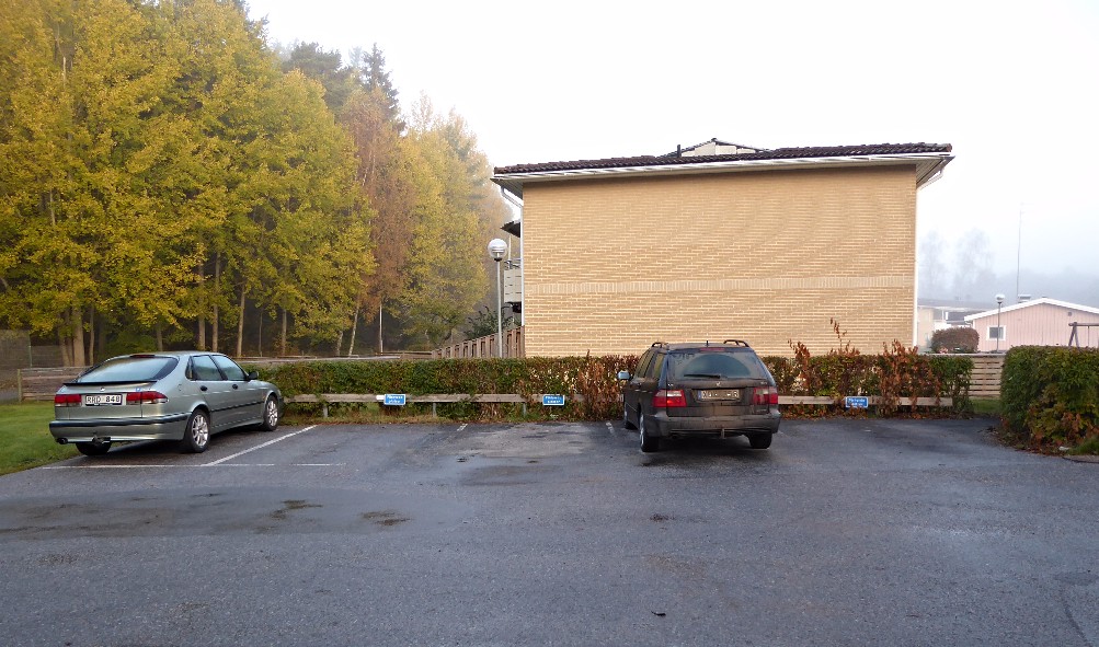 Vid infarten finns åtta parkeringsplatser för gäster. Du som bor i området bör inte blockera dessa. De är märkta med ”Förhyrda platser” men är till för den som besöker någon som bor i föreningen. En egen p-plats med eluttag kostar för nuvarande endast 100 kronor i månaden. Garage 200 kr. Vi har 10 platser med möjlighet till laddning. Vill man utnyttja den kostar det 50 kr extra i månaden, plus elkostnaden. Riksbyggen administrerar alla bilplatser. Logga in på Mitt Riksbyggen eller ring 0771 860 860.